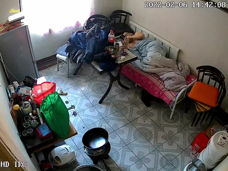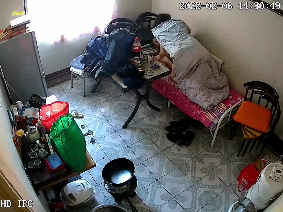 摄像头泄密包工头老李和厨房煮饭阿姨大白天在工棚宿舍啪啪。